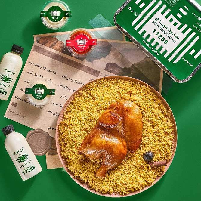 - مضغوط دجاج بالاختيار بين (أورجينال - وش محمر)، تقدم مع دقوس + سلطة زبادي + أرز بلبن صغير.